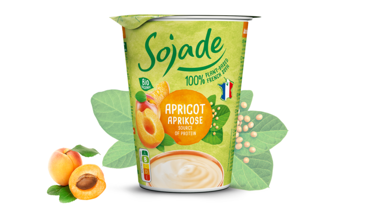 Descripción del productoDescubre esta alternativa al yogur tradicional elaborada con soja ecológica francesa libre de OMG y albaricoque. Es un producto naturalmente alto en proteínas de origen vegetal y te permite mantener una dieta saludable y equilibrada. Puedes disfrutarlo como postre o tentempié.IngredientesBebida de soja* 78% (agua, habas de soja* 10,8%), albaricoque* 10%, azúcar de caña sin refinar*°, espesantes: almidón de tapioca* – agar agar*, aroma natural de albaricoque*, fermentos seleccionados, de los cuales Bifidus y Lactobacillus acidophilus.*Procedente de la agricultura ecológica.°Procedente de comercio justo.Bebida de soja conforme a la norma NF V 29-001, habas de soja procedentes de Francia, garantizadas sin OGMSugerencia de conservaciónConservar entre 2 °C y 6 °C.