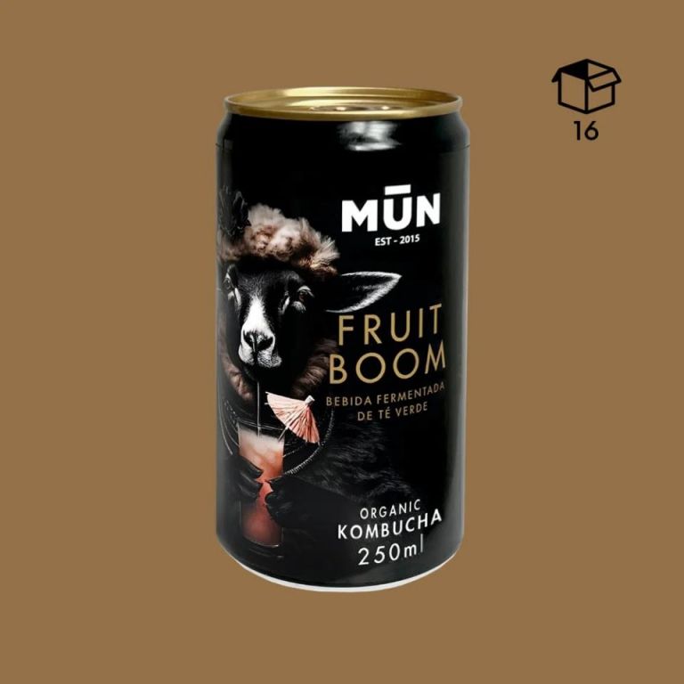 Radikal FRUIT BOOM: kombucha ecológica con arándanos, hibisco, hierba luisa, granada, melocotón y uva. Y una suave infusión de hojas de estevia. Dulce, suave y muy refrescante.Ingredientes: Agua, azúcar de caña*, zumo de arándanos* (0,15%), zumo de granada* (0,10%), zumo de melocotón y uva*(0,10%), hibisco*, té verde* (0,09%), infusión de hojas de Stevia rebaudiana Bertoni*, hierba luisa*, aroma natural de melocotón y cultivo de kombucha.(*) Producción ecológica