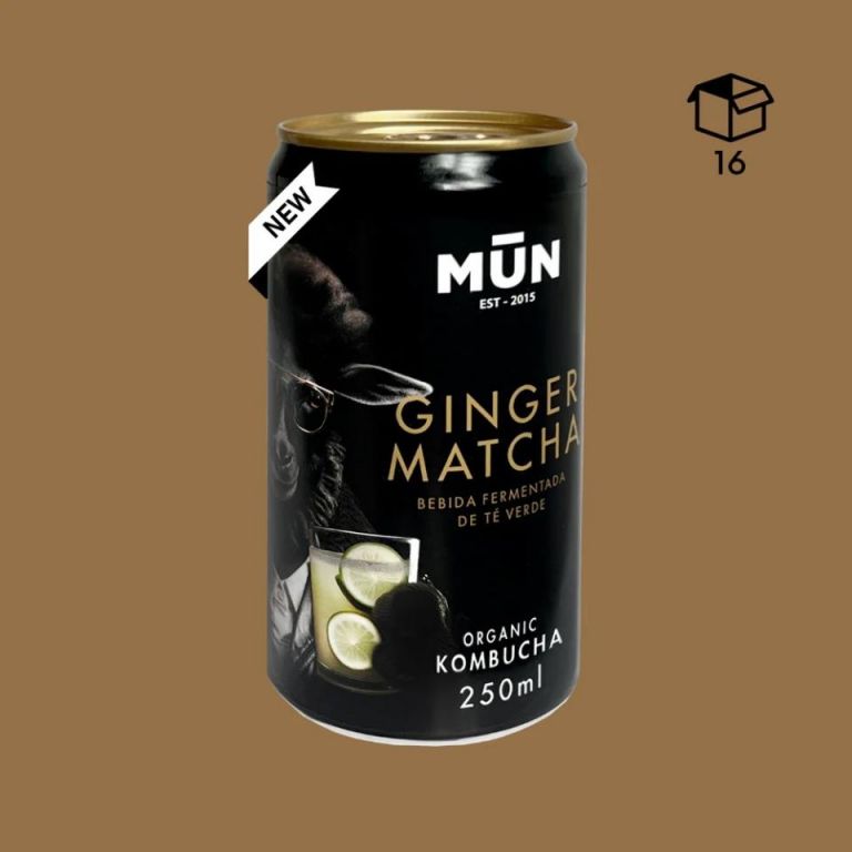 Radikal GINGER MATCHA con jengibre, té matcha, mate, hierbalimón, zumo de limón y una chispa de infusión de hojas de estevia. Si te van las kombuchas ácidas y con potencia, no lo dudeeeeees ni un segundo.Ingredientes: Agua, azúcar de caña*, jengibre* (0,30%), zumo de limón* (0,20%), hierba limón*, mate* (0,20%), té verde* (0,09%), infusión de hojas de Stevia rebaudiana Bertoni*, té matcha* (0,04%),aroma natural de limón y cultivo de kombucha.(*) Producción ecológica